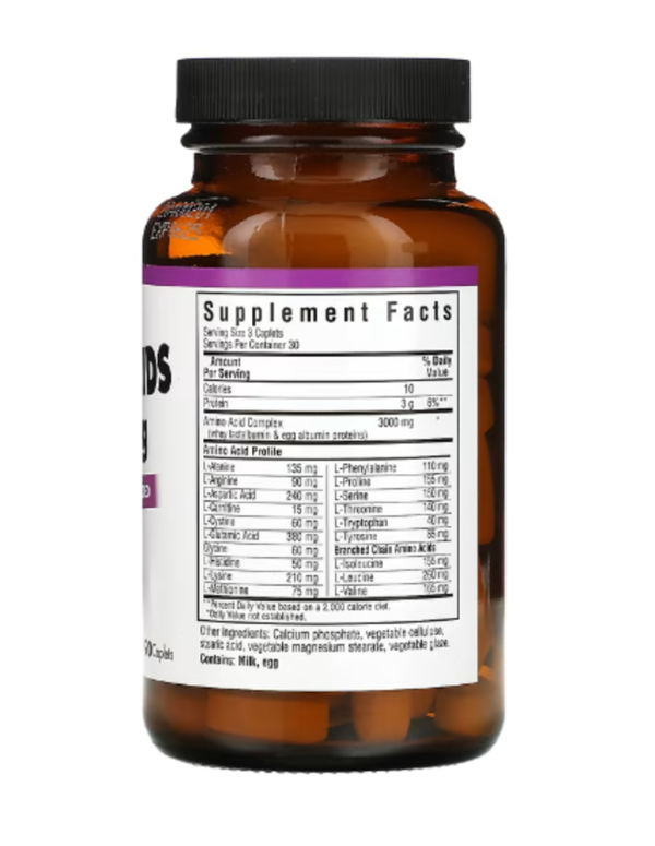 Bluebonnet's Amino Acids 1000 mg Caplets are formulated with free-form and dipeptide-bonded amino acids from whey lactalbumin and egg white albumin proteins that deliver muscle-building branched chain amino acids (BCAAs). These amino acids help to increase nitrogen retention for enhanced muscle growth, strength and repair.
