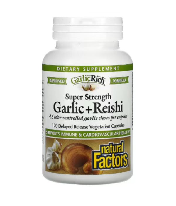 GarlicRich Garlic+Reishi provides support for the immune and cardiovascular systems. The 10:1 garlic concentrate is safe from pesticides and offers a full spectrum of important actives equal to 4.5 cloves of fresh garlic per capsule, while the potent 30:1 organic reishi mushroom extract provides additional adaptogenic support.