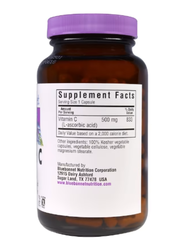 Bluebonnet's Vitamin C-500 mg Capsules provide pure vitamin C from L-ascorbic acid. Tested for quality and purity in our own state-of-the-art laboratory. Available in easy-to-swallow vegetable capsules for maximum assimilation and absorption.
