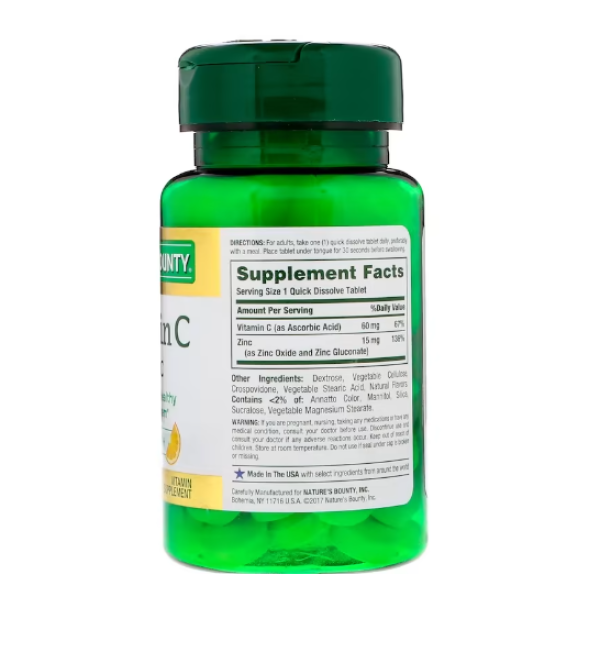 | Zinc (as Zinc Oxide and Zinc Gluconate) | 15 mg | 136% |